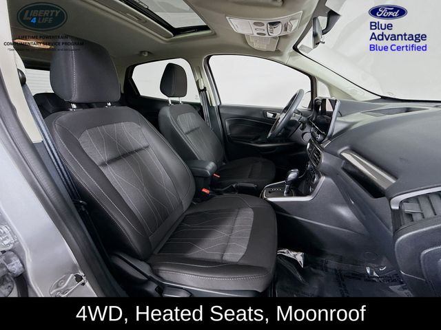 This Ford Blue Certified pre-owned EcoSport has undergone a comprehensive 139-point inspection, ensuring its quality and reliability. As part of the certification, you'll enjoy the peace of mind of a Transferable Warranty, Roadside Assistance, and a Limited Warranty that extends 3 months/4,000 miles beyond the original manufacturer's warranty. Additionally, you'll receive 11,000 FordPass Rewards Points to put towards your first maintenance visit.