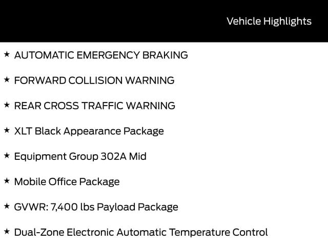 BACK UP CAMERA, BLUETOOTH, HEATED SEATS, 3RD ROW SEATS, REMOTE START, CRUISE CONTROL, POWER WINDOWS, POWER LOCKS, MULTI-ZONE CLIMATE CONTROL, STEERING WHEEL CONTROLS, AWD / 4WD, LANE DEPARTURE WARNING, LANE KEEP ASSIST, APPLE CARPLAY, ANDROID AUTO, FORD SYNC, AUTOMATIC EMERGENCY BRAKING, FORWARD COLLISION WARNING, REAR CROSS TRAFFIC WARNING, 3.5L PowerBoost Full-Hybrid V6, 4WD, 360 Degree Camera, 400W Cab & Bed Outlets, 6" Angular Bright Anodized Step Bar, 6" Black Running Boards, Adaptive Cruise Control w/Stop & Go, Auto-Dimming Rear-View Mirror, Black Exterior Badging, Black Grille, Black Painted Grille w/Chrome Center Bar, Body-Color Front & Rear Bumpers, Chrome Door & Tailgate Handles, Chrome Single-Tip Exhaust, Cloth 40/Console/40 Front Seats, Connected Navigation, Console Worksurface, Dark Interior Appliques, Driver State Detection, Dual-Zone Electronic Automatic Temperature Control, Electronic Locking w/3.73 Axle Ratio, Equipment Group 302A Mid, Evasive Steering Assist, Floor Shifter, Ford Co-Pilot360 Assist 2.0, Front Parking Sensors, Gray Box Side Decal, GVWR: 7,400 lbs Payload Package, Heated Front Seats, Intelligent Access w/Push Button Start, Mobile Office Package, Partitioned Lockable Rear Storage, Power Glass Heated Sideview Mirrors, Power-Sliding Rear Window, Remote Start System w/Remote Tailgate Release, Towing Technology, Unique Sport Cloth 40/Console/40 Front-Seats, Wheels: 18" Gloss Black, Wrapped Steering Wheel, XLT Black Appearance Package.