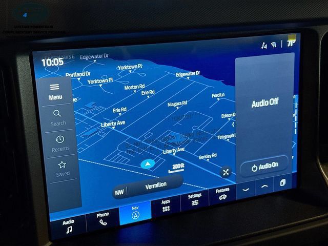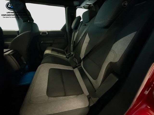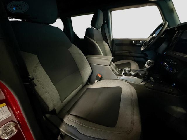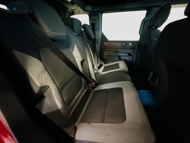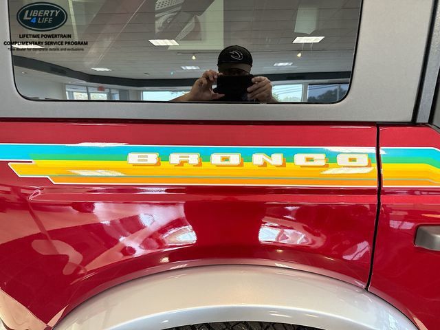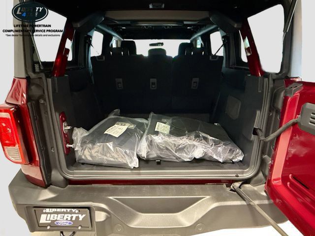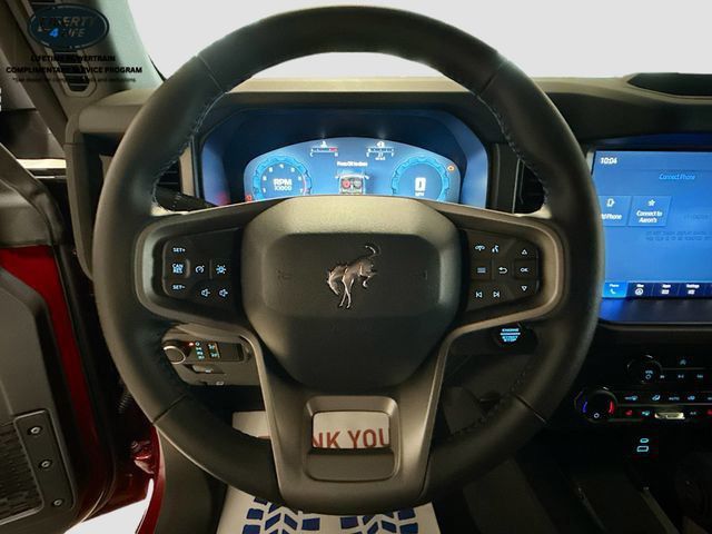 The Bronco's bold and rugged exterior, complete with the Carbonized Gray Molded-In-Color Hard Top, Hoop Steps, and Ruby Red Metallic Tinted Clearcoat paint, exudes an adventurous spirit that is sure to turn heads. Inside, the Bronco's well-appointed cabin offers a comfortable and connected driving experience, with features like the SYNC 4 infotainment system, Ambient Footwell Lighting, and 7 premium speakers.
