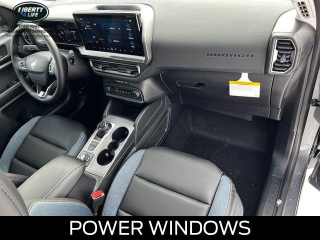 I got a 2025 Big Bend with the black diamond off road package. The steel modular front and rear in combination with bush guard gives this year model. A very aggressive off road look. With the ability to easily mount accessories and power them with the factory installed auxiliary switches. Hitch receiver seamlessly mounted into the rear steel bumper flanked by some very chunky recovery points. The upgraded aluminum rims wrapped with Continental all-terrains. It make this the most capable bronco sport yet. The interior of the 2025 has been updated with a new 13 inch touchscreen with Android Auto and apple car play. The lines of the dash flow elegantly from the new infotainment screen to the new all digital 12 inch gauge chaster. Toggling through the different modes on the gauge chaster is very intuitive, and all the displays are laid out very cleanly. Moving from gauge chaster the center storage cubby just below the infotainment screen there is a wireless charger and USB/ USB-c ports. The passenger side of that same cubby gets a handle and a matching one on the roof just in case the driver bucks a little too much. The passenger also gets a mesh storage area. That leads us to the fact this vehicle has tons of storage options all throughout. You have pockets on the sides of the front two seat big enough for the latest new phones. Very generous door storage on all four doors plus huge glove box and center console with 12 volt outlet. The back side of the center console has air vents and another 12 volt outlet plus a 110 outlet. Now getting to the cargo area it is massive for a crossover SUV. With off road package you get a cargo management system and a very nice rubber mat. Under that there is a full size tire plus scissor jack and funnel to use with the capless filler system. On the liftgate there isa pair of very bright led lights turned on with a switch in the cargo area. This feature packed vehicle has tons awesome gadgets and hidden a little homages I spend all day just talk that. At the end of the day it is car. So how does it drive. It is wonderful, the steering and pedal response is beautiful. Rides very smooth and little to no road noise going down the highway. The active cruise control and co-pilot 360 have been very handy. The car literally drives itself most of the time. There is not enough good things I could same about this car. I love it and you pick one too. You will see what I mean. - 5.0