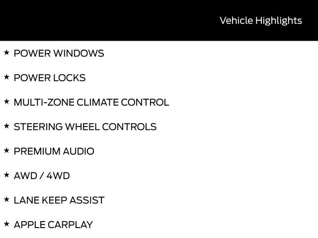 SUNROOF / MOONROOF, LEATHER SEATS, BACK UP CAMERA, BLUETOOTH, HEATED SEATS, REMOTE START, PREMIUM WHEELS, CRUISE CONTROL, POWER WINDOWS, POWER LOCKS, MULTI-ZONE CLIMATE CONTROL, STEERING WHEEL CONTROLS, PREMIUM AUDIO, AWD / 4WD, LANE KEEP ASSIST, APPLE CARPLAY, ANDROID AUTO, FORD SYNC, AUTOMATIC EMERGENCY BRAKING, FORWARD COLLISION WARNING, REAR CROSS TRAFFIC WARNING, B&O Sound System by Bang & Olufsen, Connected Navigation, Equipment Group 300A, HD Radio, Outer Banks Tech Package+, Power Moonroof. 25/30 City/Highway MPG