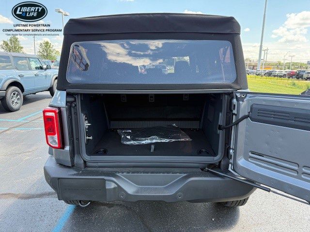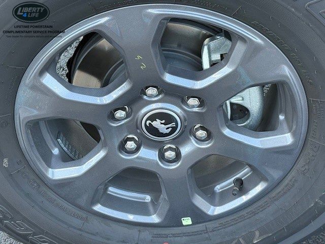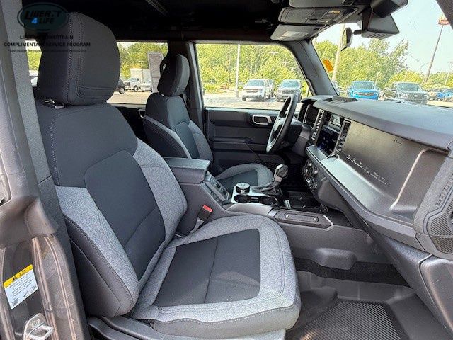 Standout amenities include 7 premium speakers, dual-zone electronic automatic temperature control, Pro Power Onboard with 400W of power, and a host of advanced safety technologies like ABS brakes, electronic stability control, and an integrated roll-over protection system. The Bronco's distinctive style is complemented by 17-inch carbonized gray-painted aluminum wheels, adding a touch of rugged sophistication.