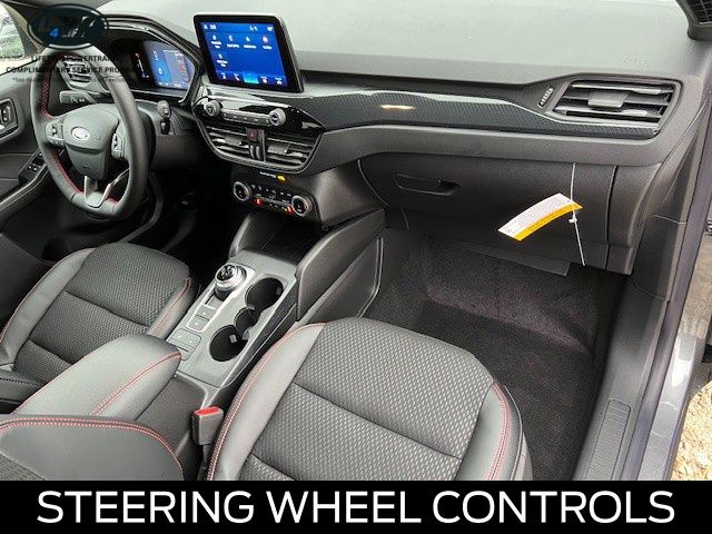 Stepping inside, you'll be greeted by a sophisticated and well-appointed cabin, featuring the SYNC 4 communications and entertainment system, a premium audio setup, and a host of advanced safety technologies. The heated partial vinyl and cloth front sport contour bucket seats with red stitching add a touch of sportiness, while the 8-way power driver's seat and 4-way manual passenger seat ensure exceptional comfort.