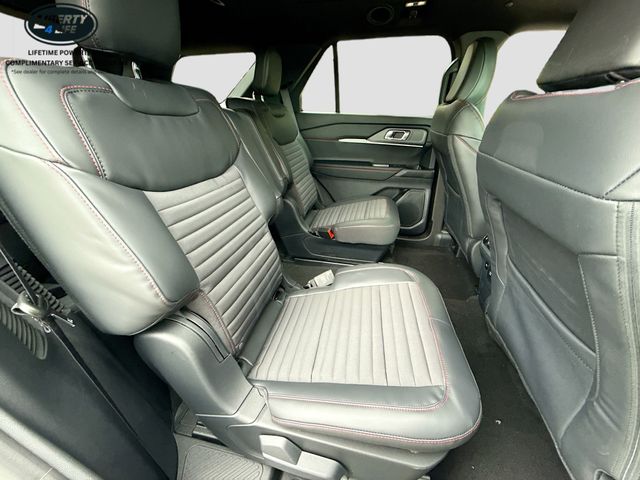Step inside and you'll be greeted by a spacious and well-appointed interior, featuring heated and unique cloth captain's chairs, a heated steering wheel, and a state-of-the-art infotainment system with Apple CarPlay and Android Auto integration. The third-row seating and ample cargo space make the Explorer ST-Line the ideal choice for families and active lifestyles.