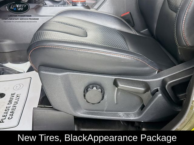 The Raptor Black Appearance Package adds a bold, aggressive style with matte black hood graphics, shadow black painted sport tube and windshield trim, matte black painted steel bash plates, low gloss black high coverage fender flares, and gloss black sideview mirror skull caps. The Interior Carbon Fiber Pack 6 further enhances the premium cabin, while the Shadow Black Painted Hard Top provides all-weather protection with a rear-window defroster and washer, sound deadening headliner, and front row top panels storage bag.