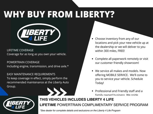 Although every reasonable effort has been made to ensure the accuracy of the information contained on this site, absolute accuracy cannot be guaranteed. This site, and all information and materials appearing on it, are presented to the user "as is" without warranty of any kind, either express or implied. All vehicles are subject to prior sale. Price does not include applicable tax, title, license, and/or $387 documentary service fee.‡ All out of state titling is subject to at $165 processing fee. Vehicles shown at different locations are not currently in our inventory (Not in Stock) but can be made available to you at our location within a reasonable date from the time of your request, not to exceed one week. See dealer for complete details and exclusions on the Liberty 4 Life Program.
